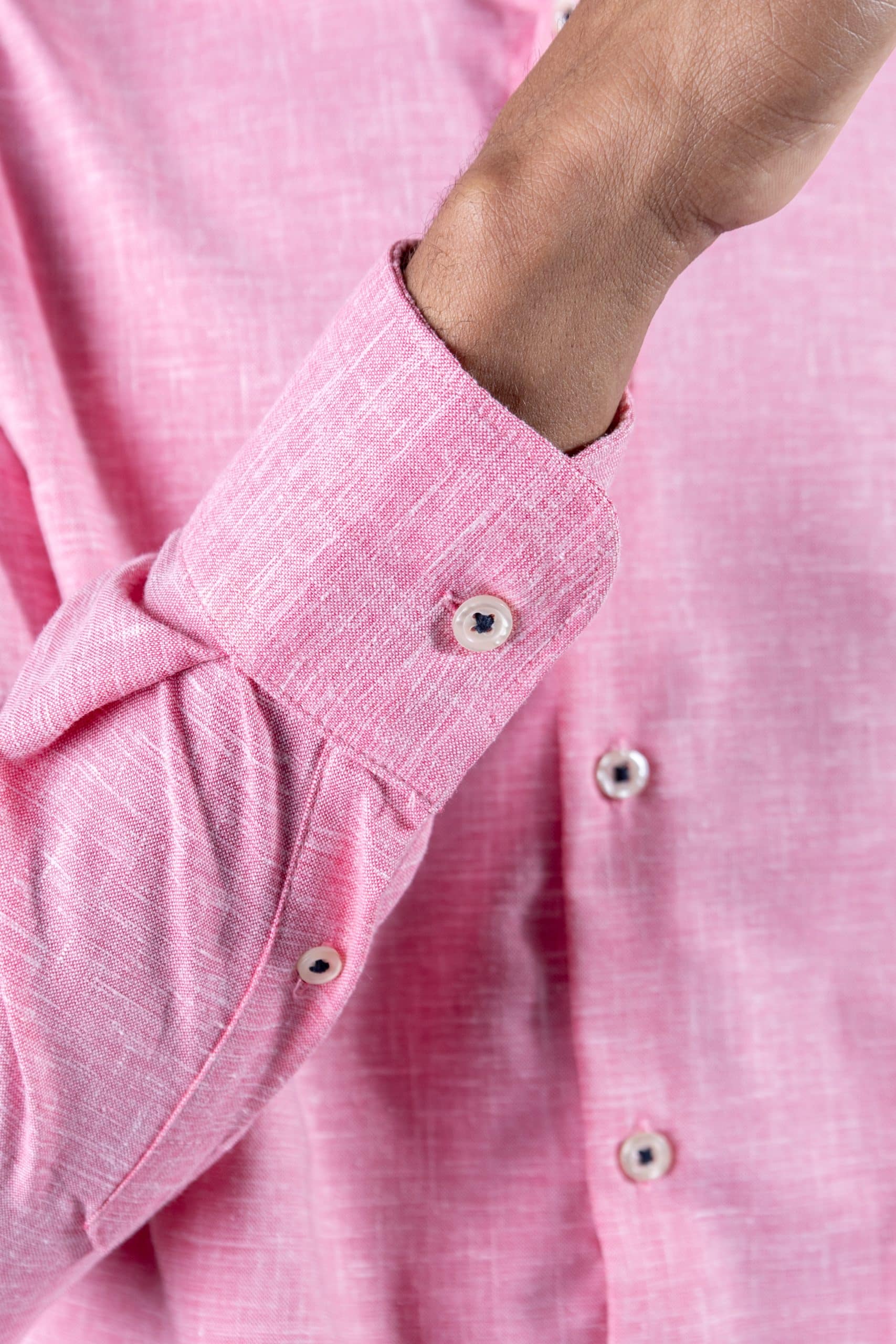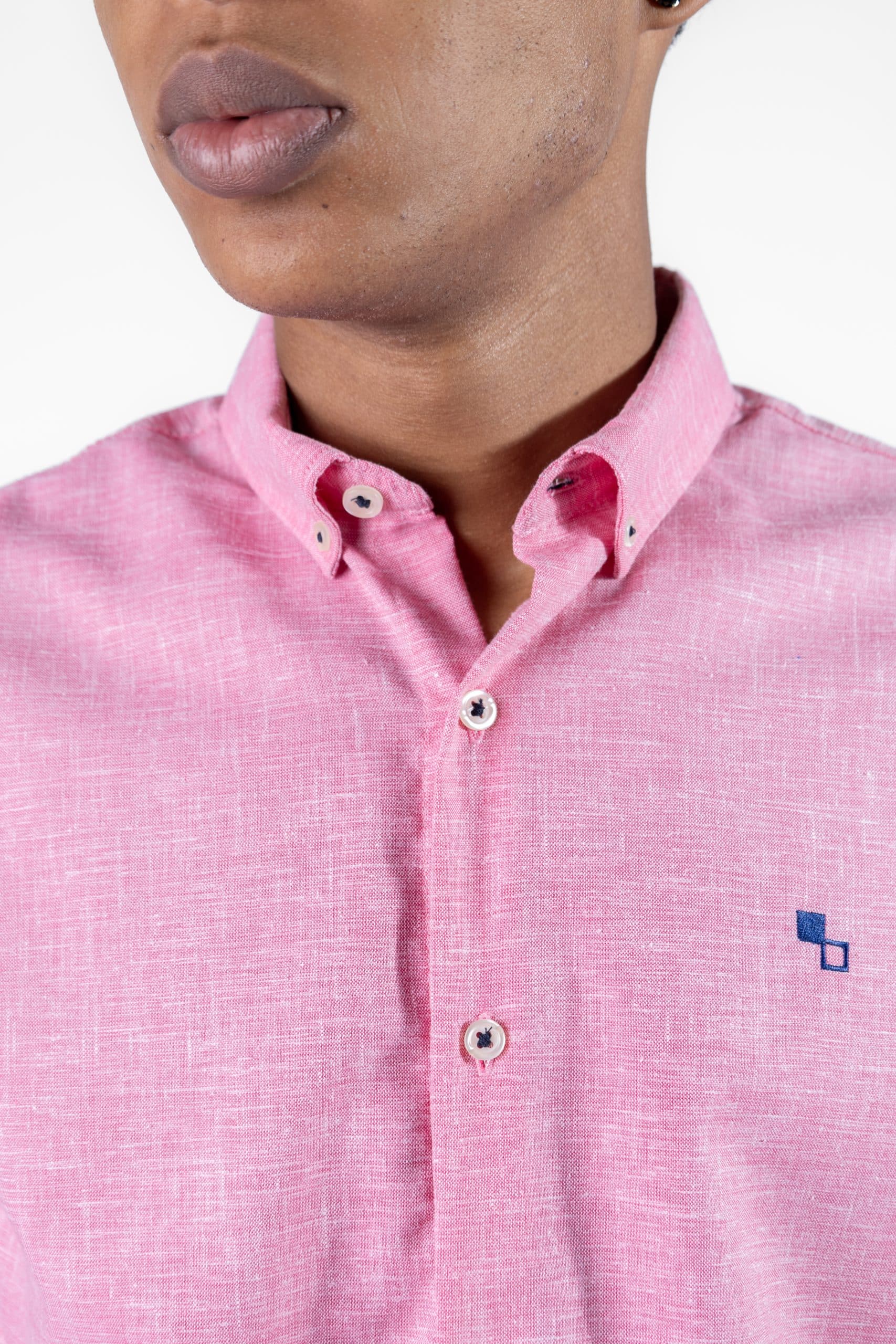 Camisa Lino Fresa Ml Cuello Down, lino, ropa de caballero, rosa