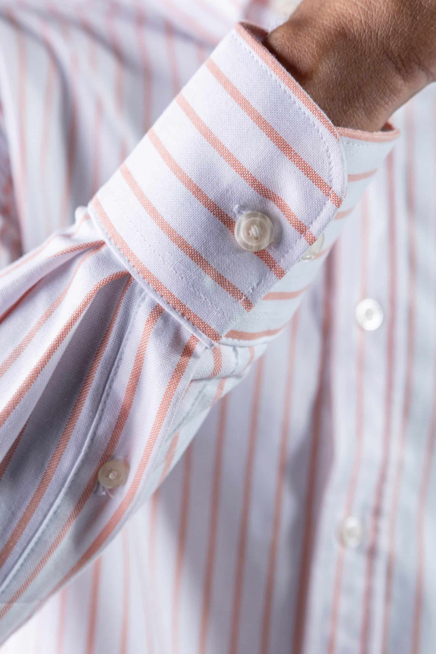 Camisa A Rayas Ml Cuello Down, 100% algodón, blanco, ropa de caballero