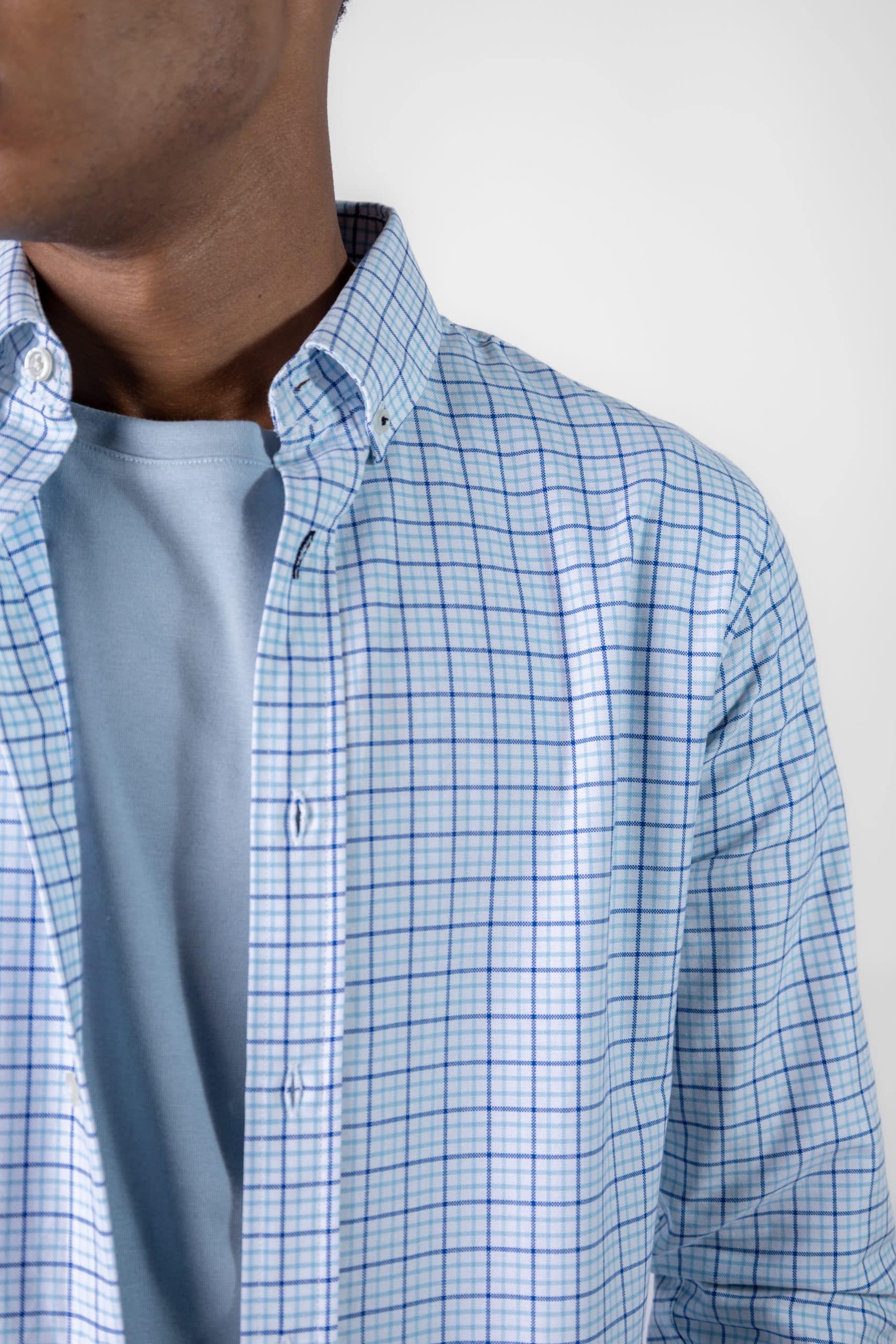 Camisa Cuadros Ml Cuello Down, 100% algodón, cuadro mediano, ropa de caballero
