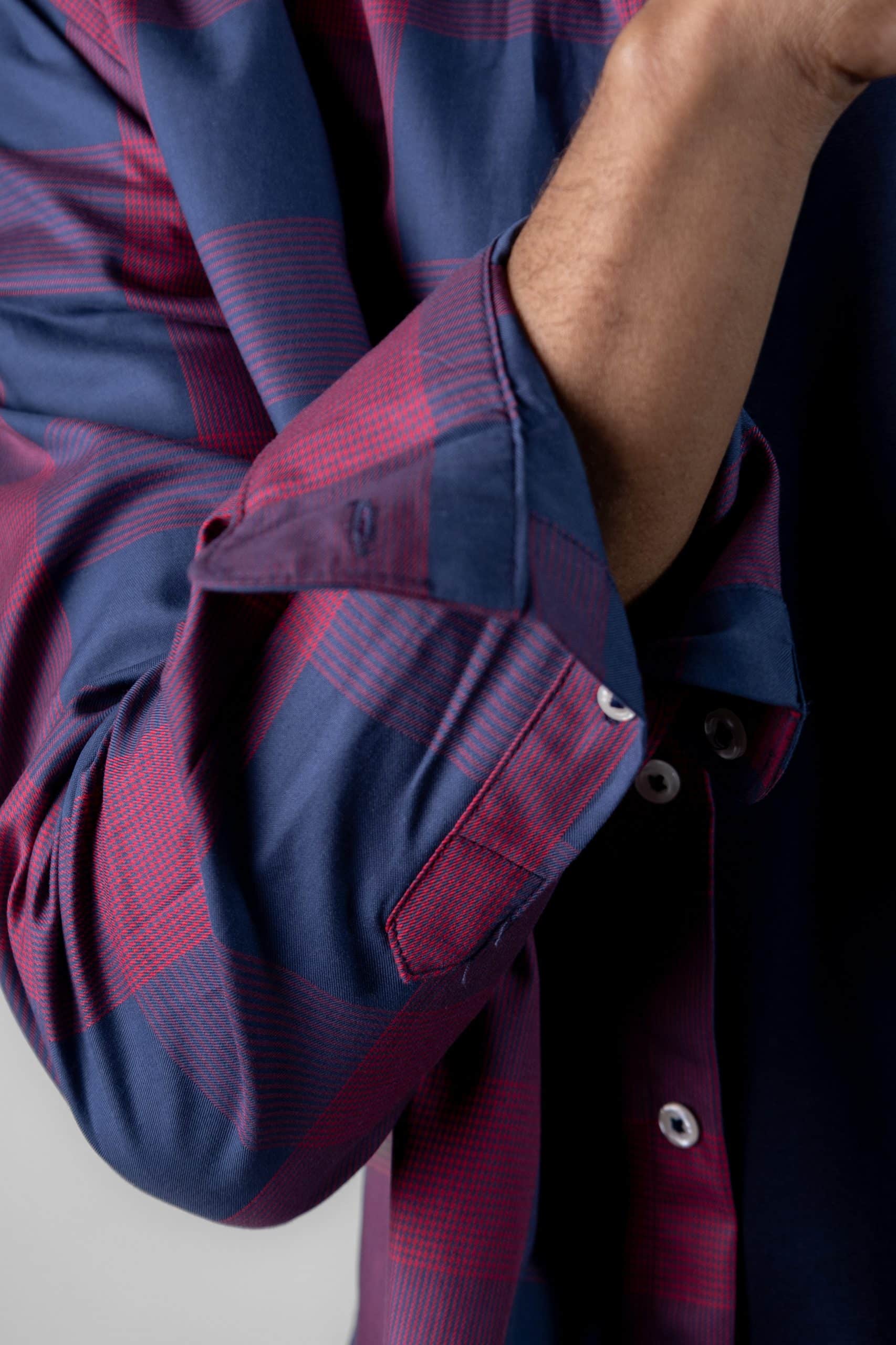 Camisa Ml A Cuadros Cuello Down, 100% algodón, cuadro grande, rojo, ropa de caballero
