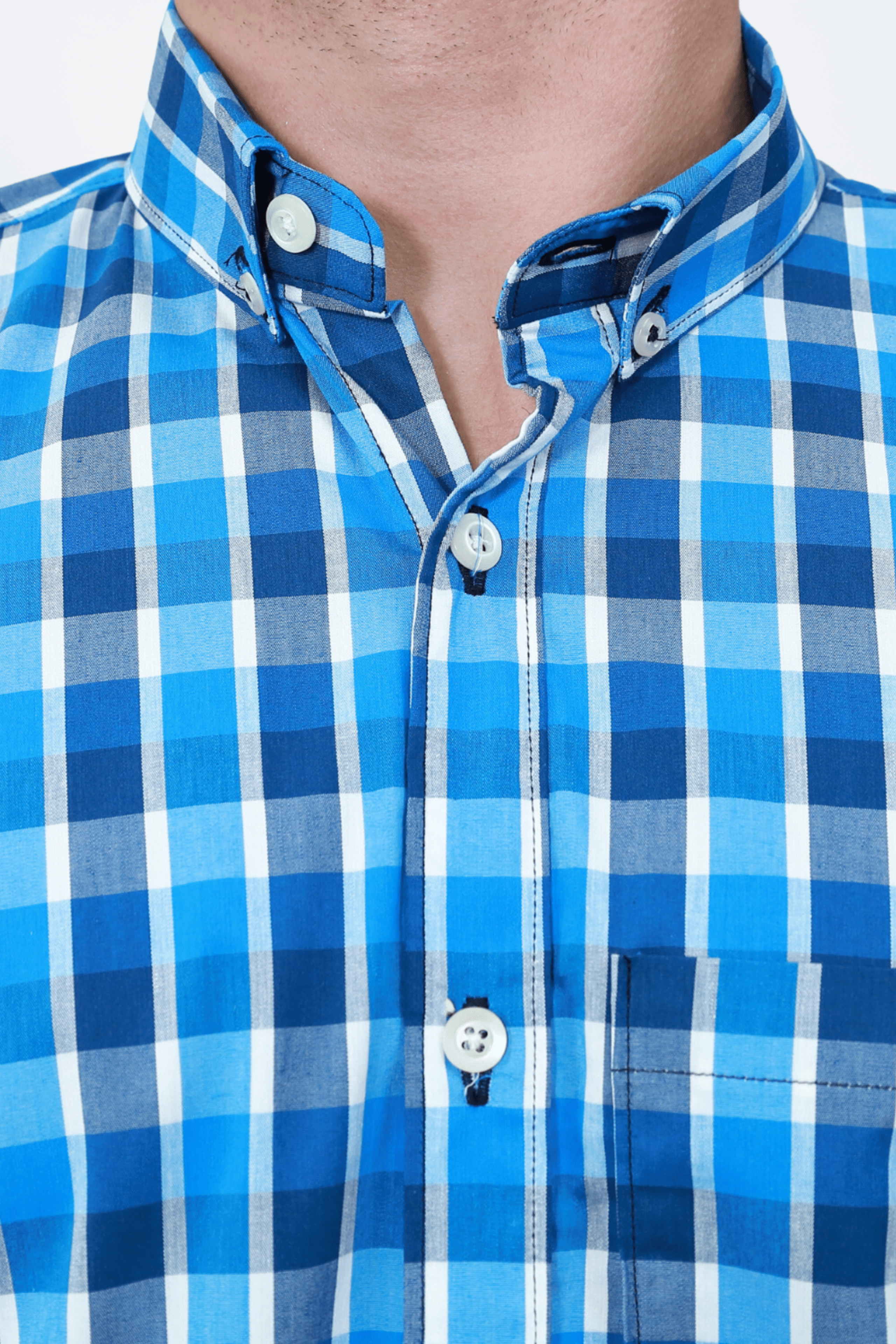 100% algodón, azul, camisa m. larga, casual /vestir, cuadros, ropa de caballero