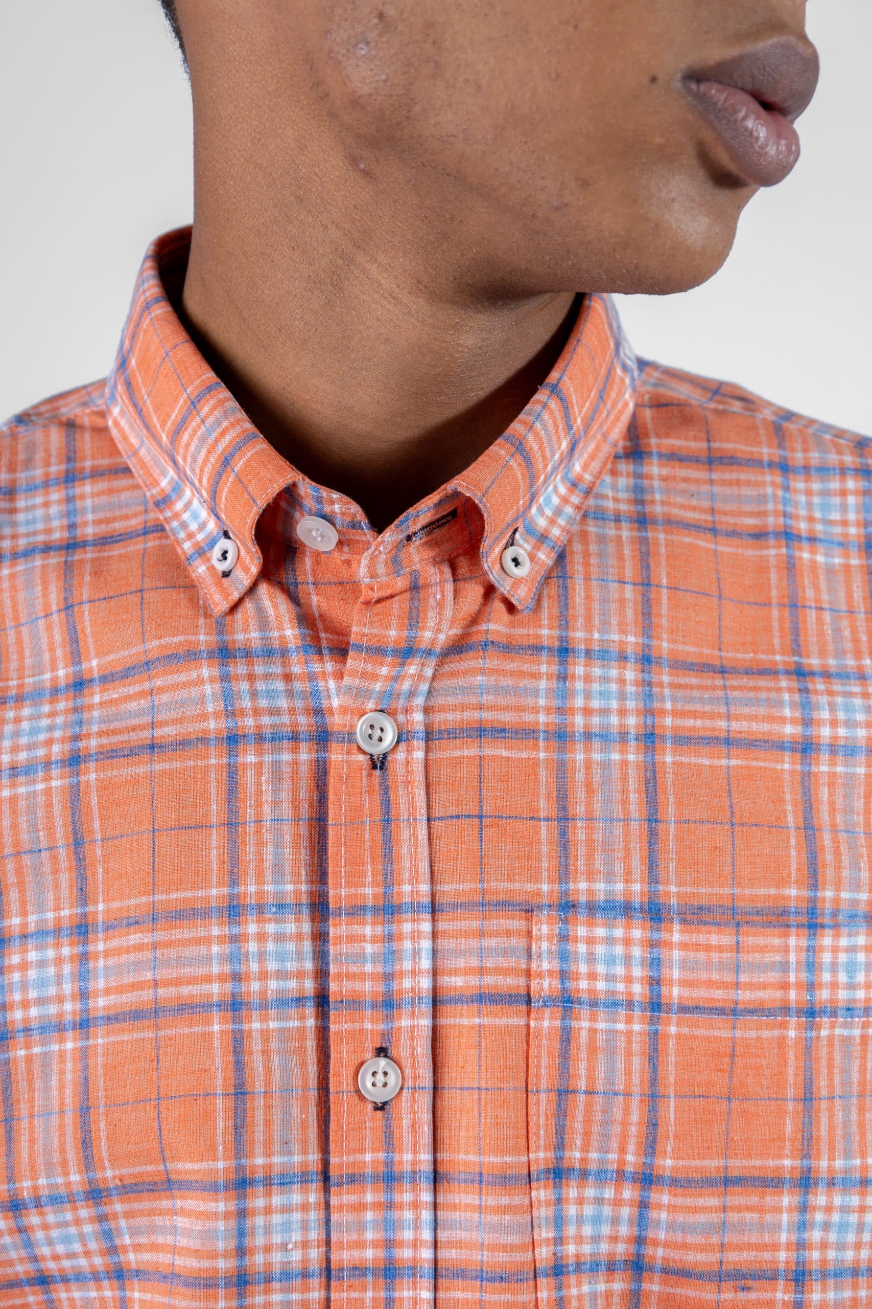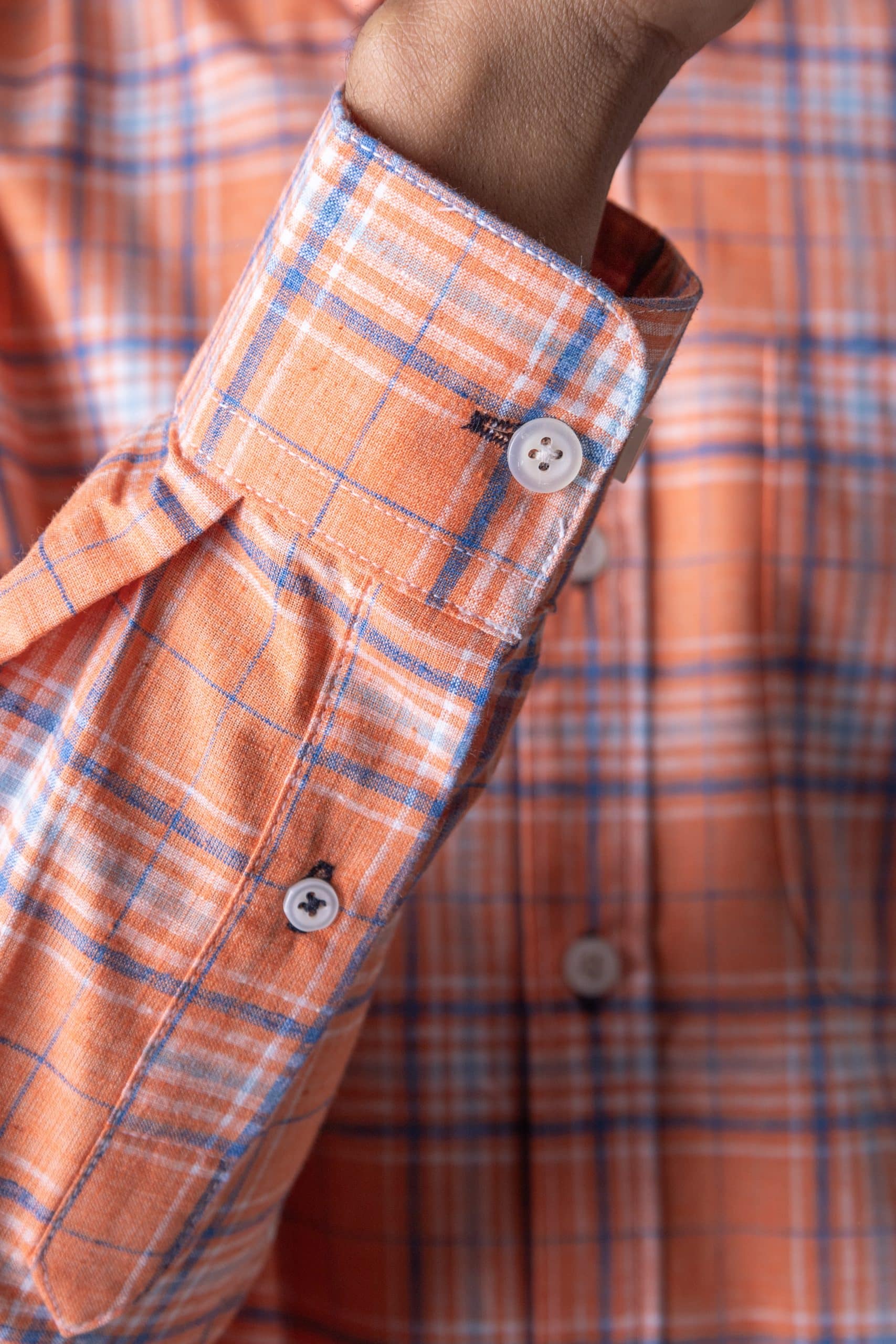 Camisa Ml A Cuadros Con Bolsa Delantera, ropa de caballero , 100% algodón, naranja, cuadro grande
