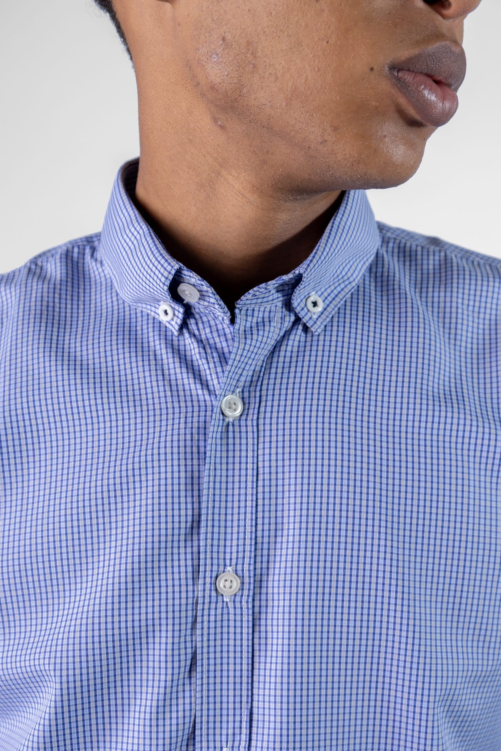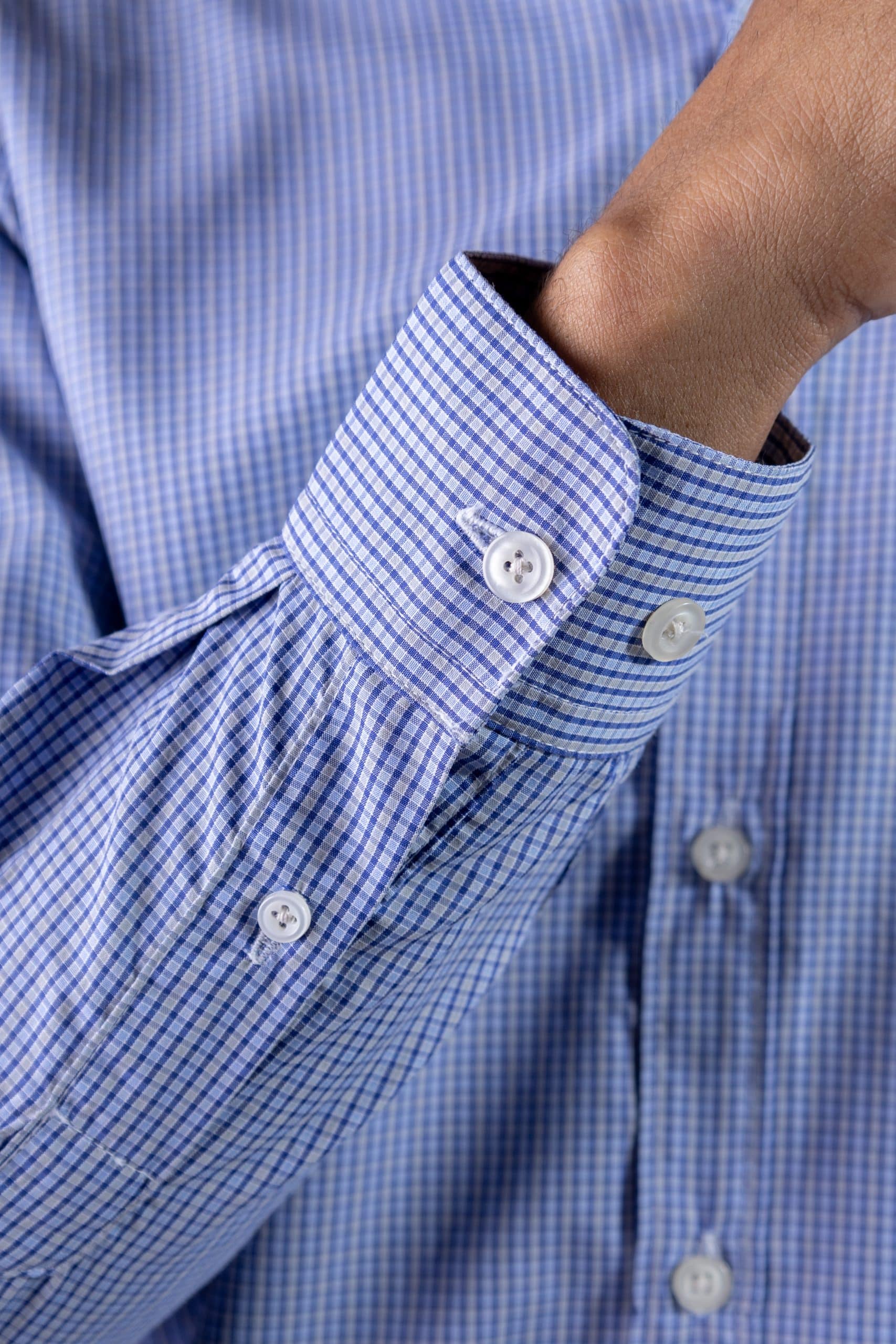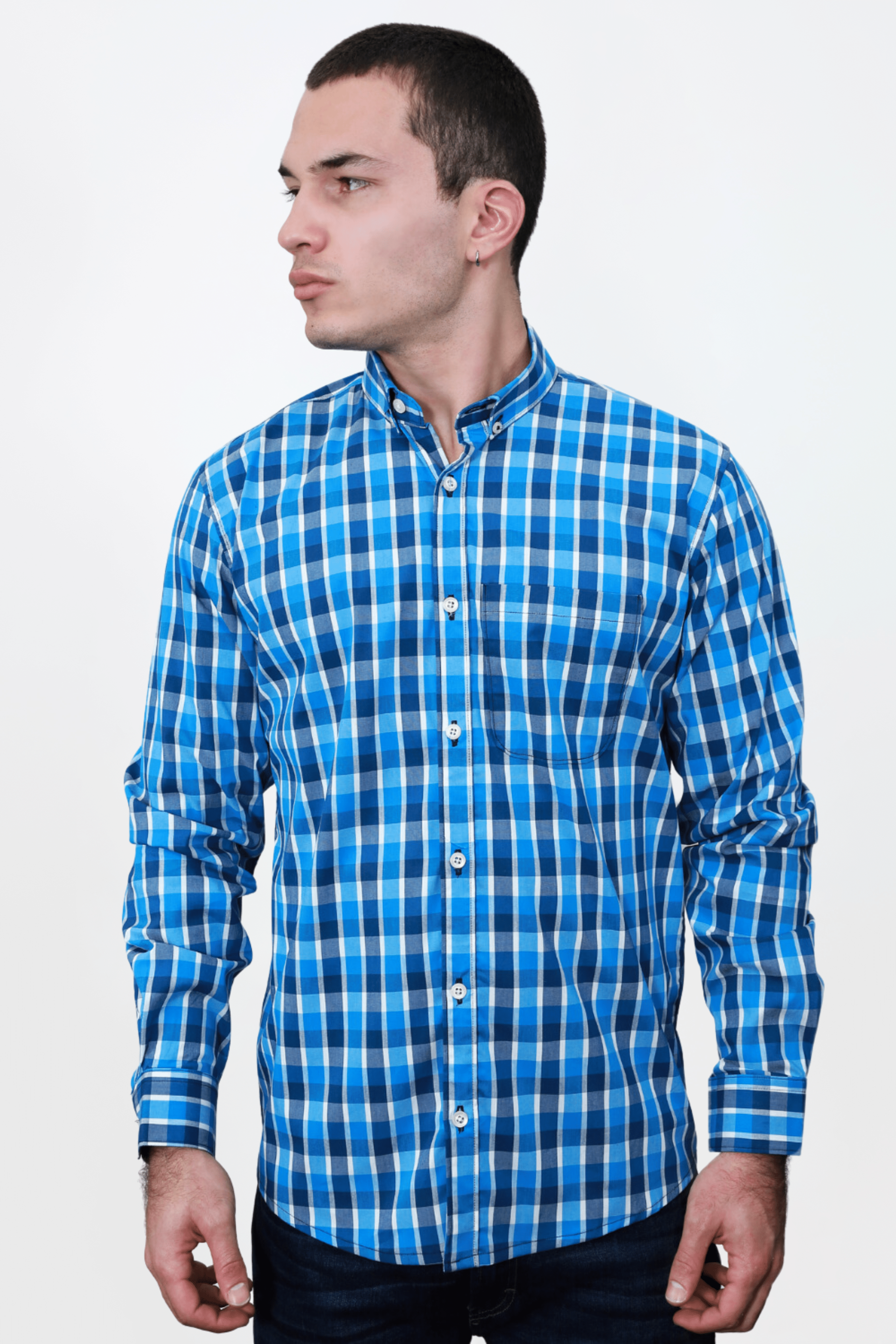 Camisa Ml Cuadros Cuello Down, 100% algodón, azul, camisa m. larga, cuadro chico.