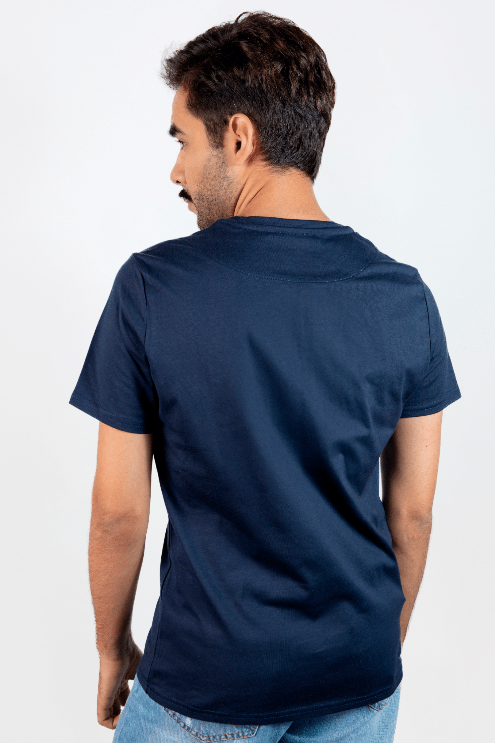100% algodón, azul marino, liso, manga corta, ropa de caballero