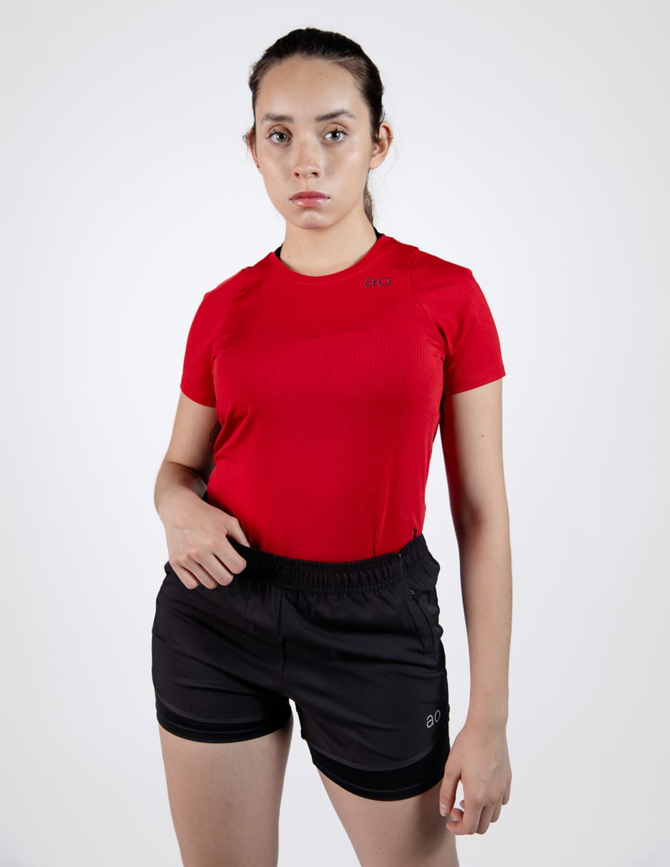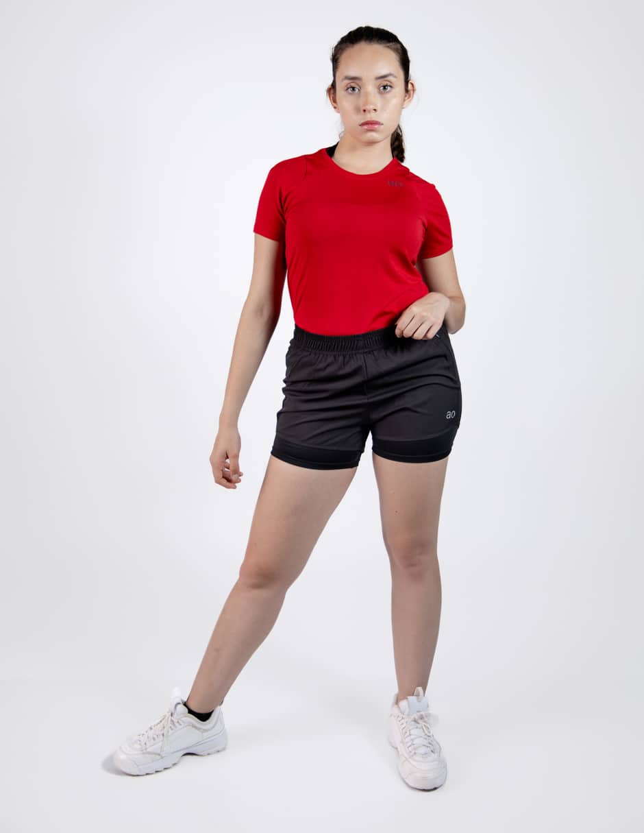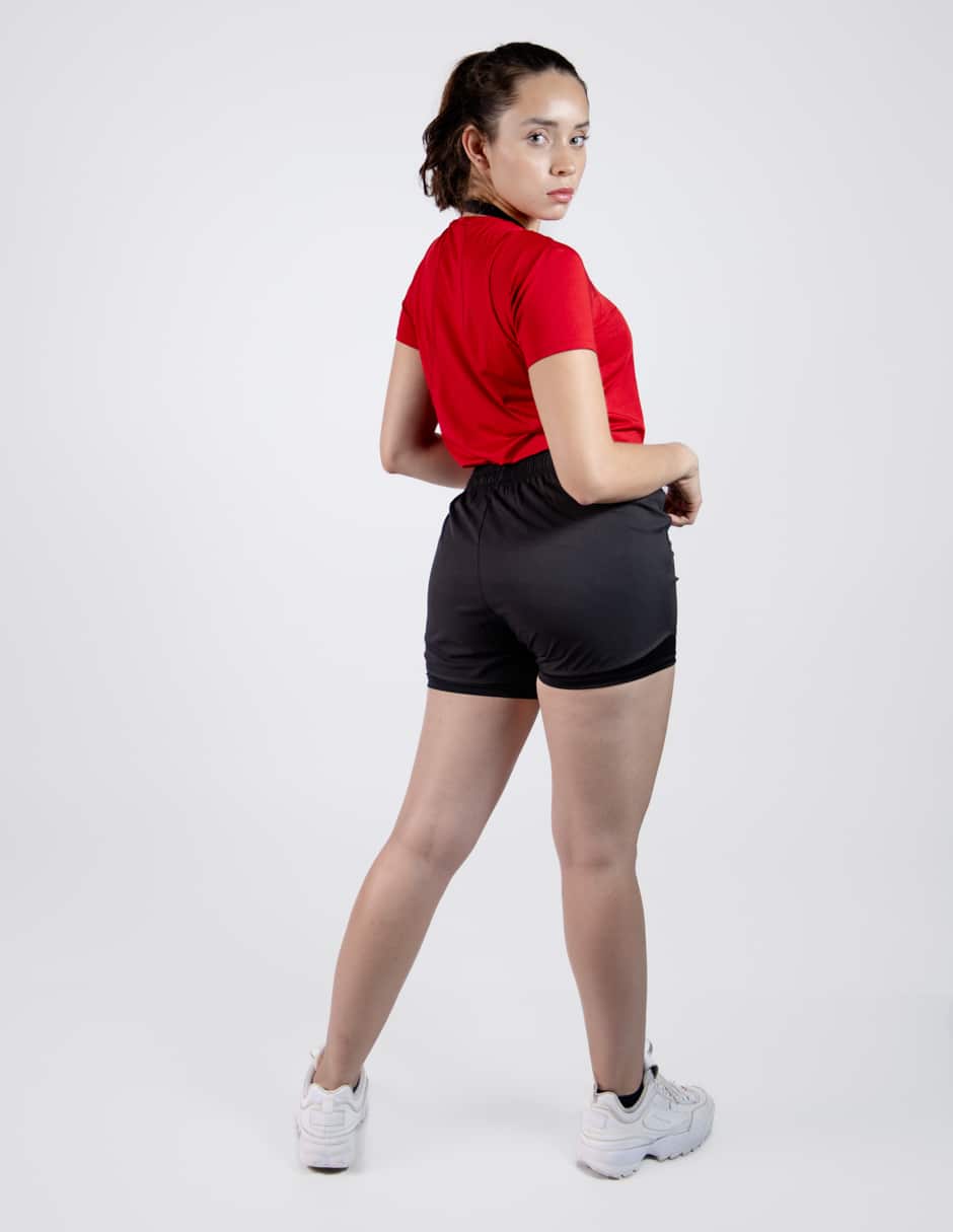 short negros para dama con lycra negra , cierre oculto en costado izquierdo, elastico en cintura y transfer logo ao en pierna izquierda