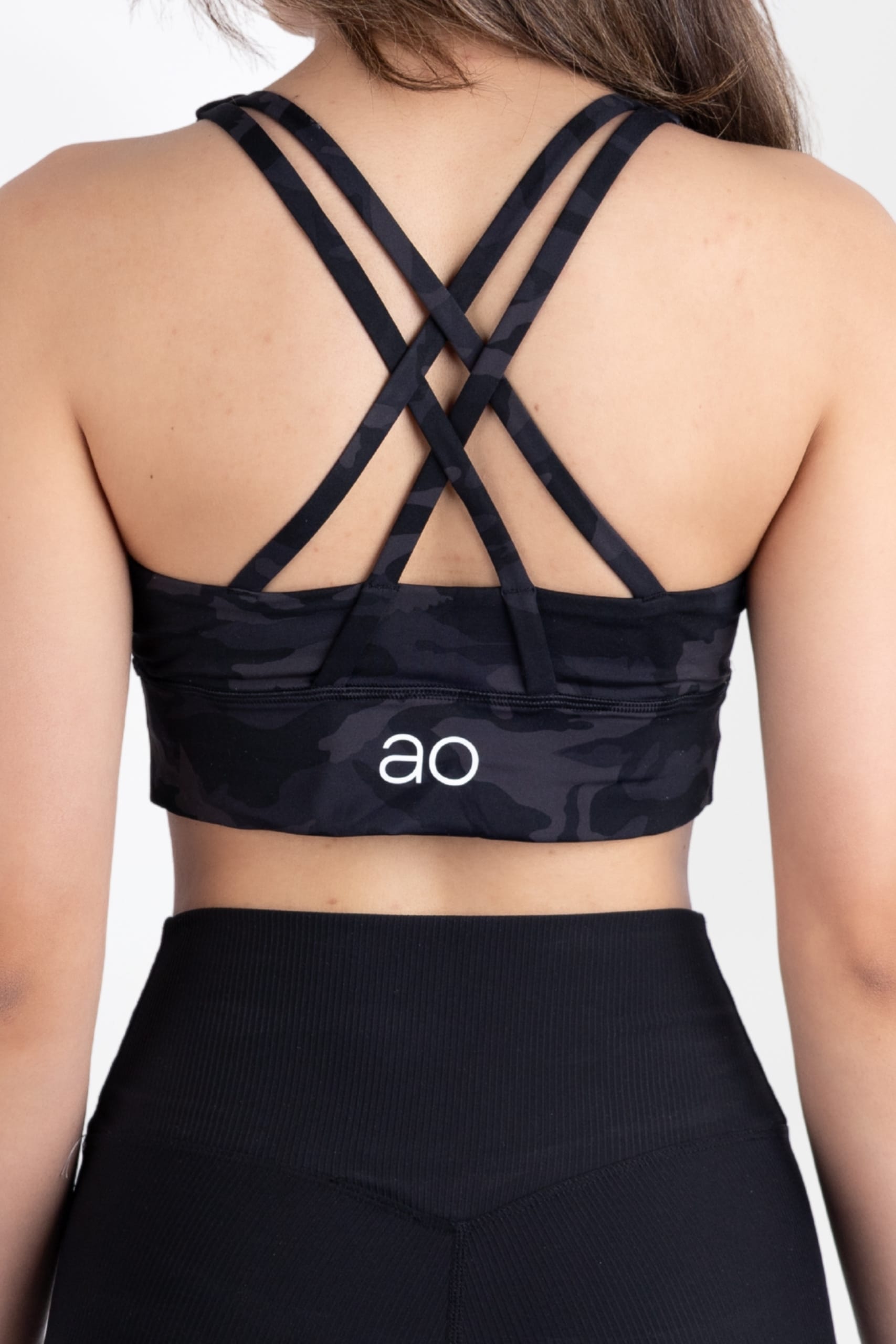 Top deportivo con camuflaje , parte trasera con tirantes cruzados 87% nylon/13% elastano