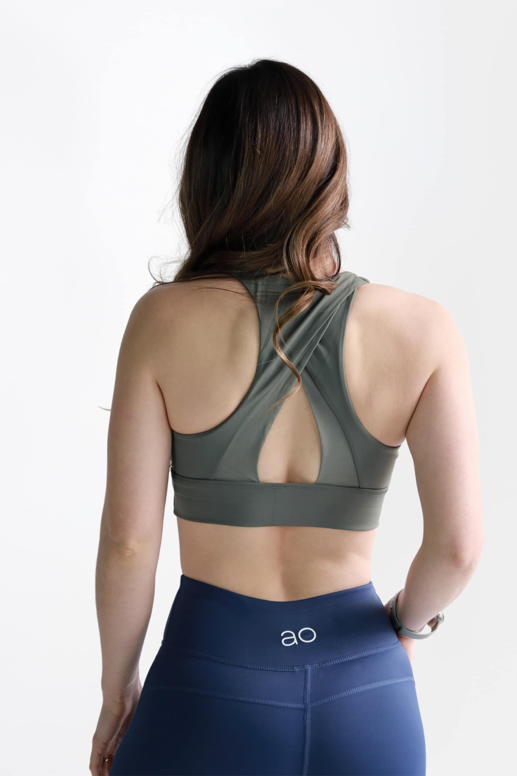 Top deportivo cruzado en espalda color olivo 87% nylon/13% elastano