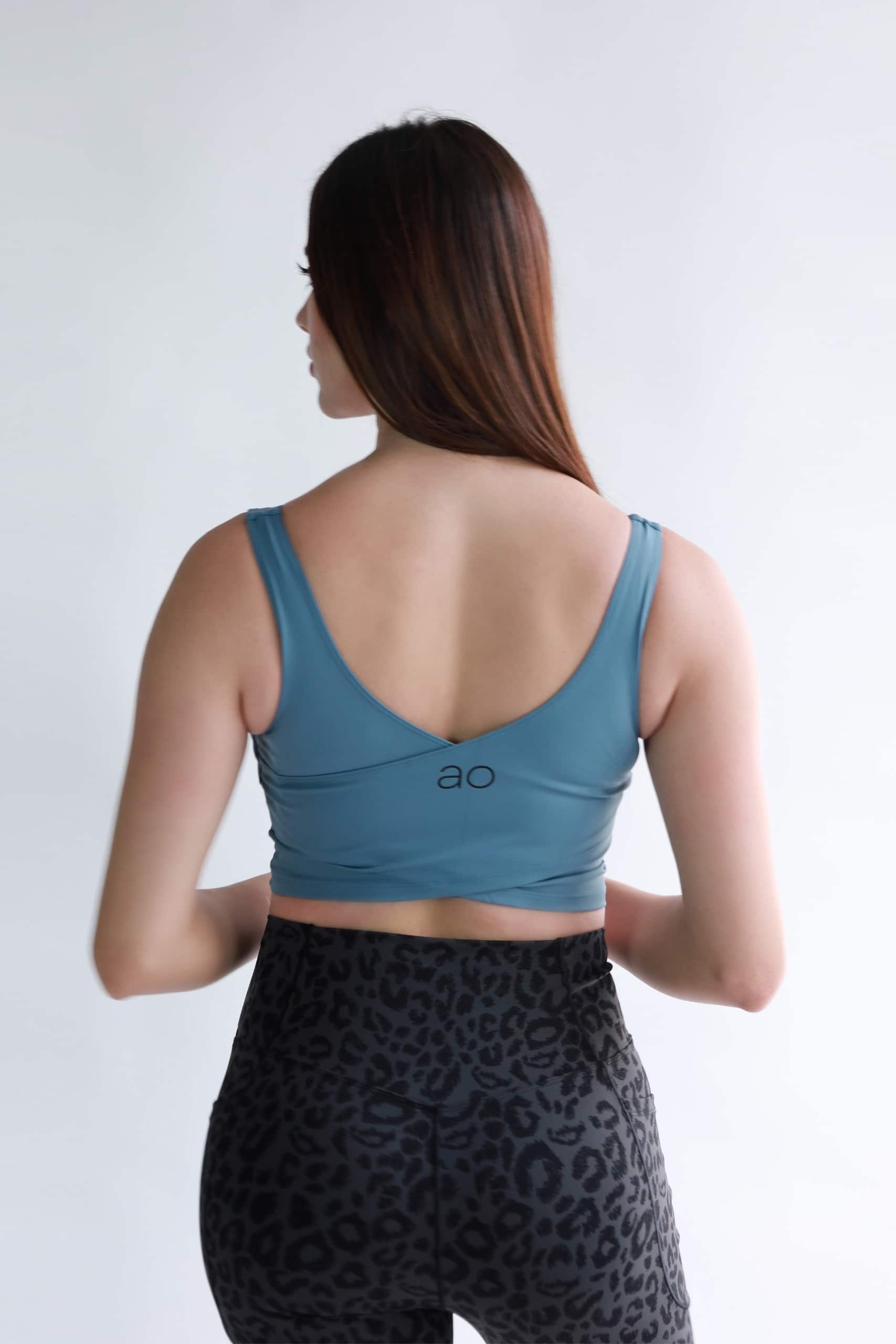 Top deportivo azul cruzado en espalda 87% nylon/13% elasta