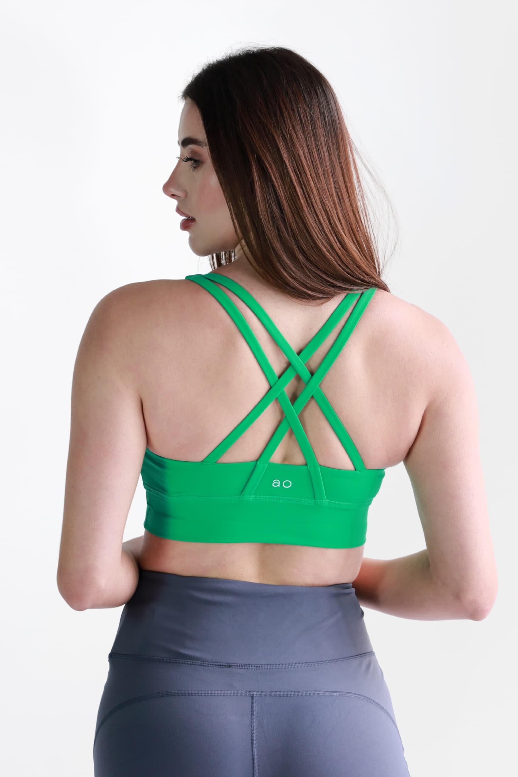 Top deportivo verde tirante cruzado en espalda 87% nylon/13% elastano